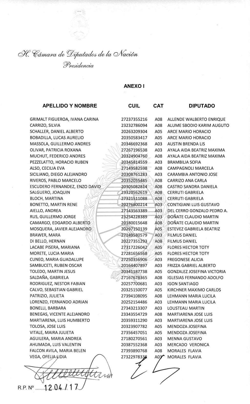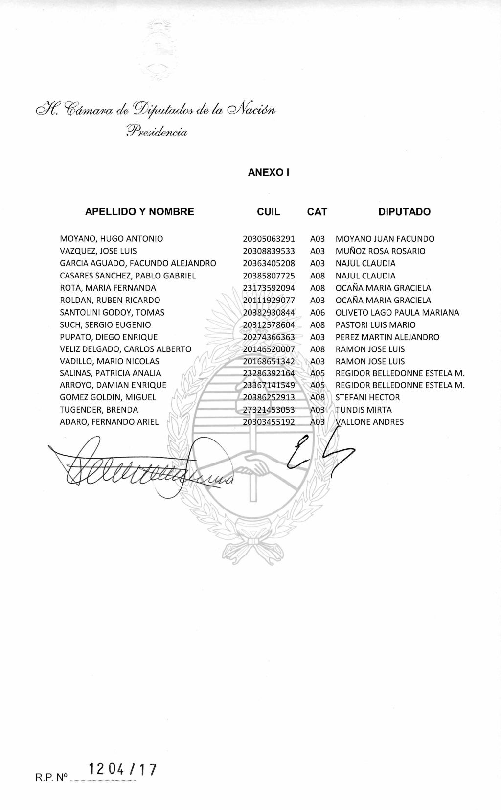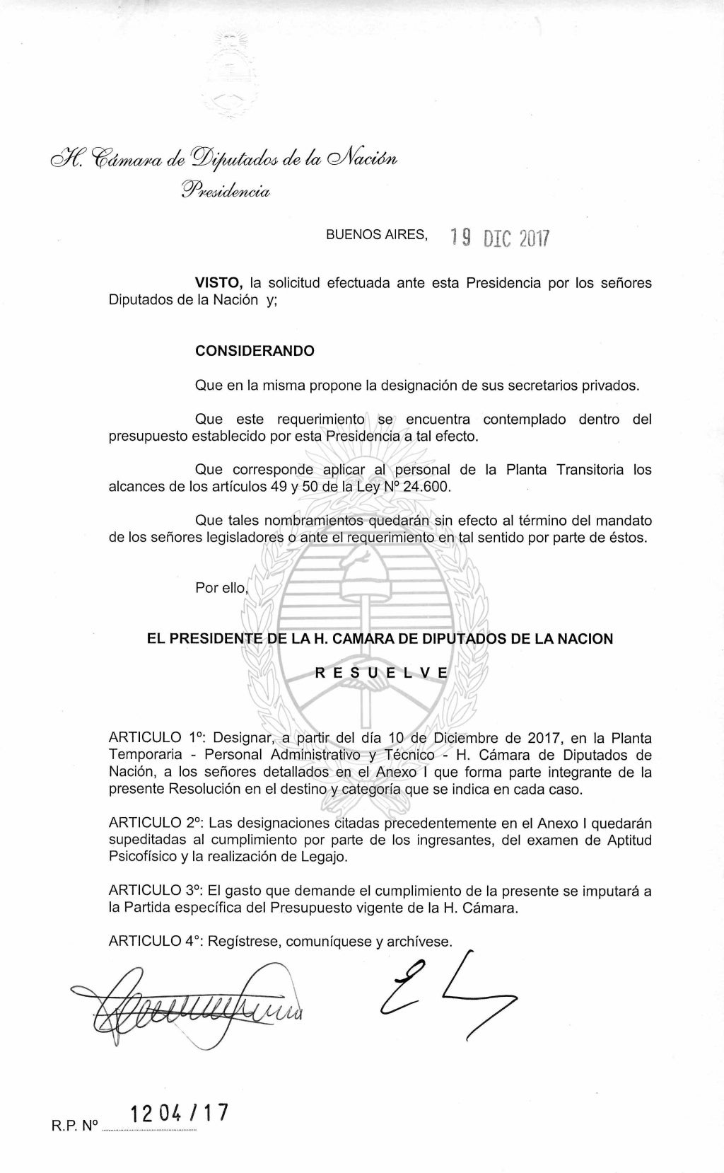 Vadillo, efectivamente, fue designado por Ramón como «secretario privado»en la planta transitoria. Cobró sueldo por ello a partir del 10 de diciembre. Su nombre aparece en la nómina de la resolución 1204/17 de la Cámara de Diputados de la Nación.